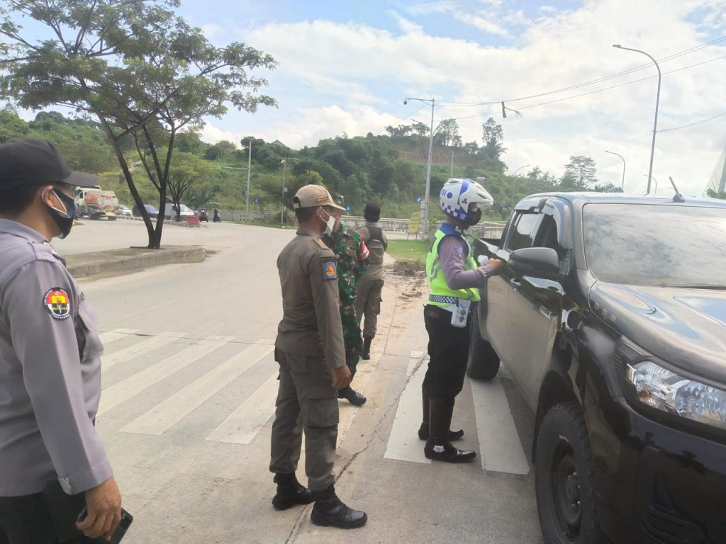 Bersama Polsek, Koramil Palaran, Brimob, Satpol-PP, Dishub, BPBD, PJR Tol Balsam, melaksanakan operasi yustisi di Posko penyekatan PPKM Covid-19 level 4 di posko jembatan Achmad Amins Sabtu, (14/08/21) kegiatan dilan...